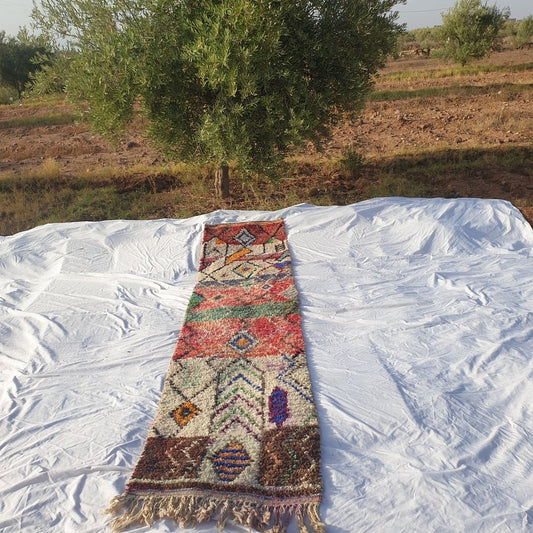 Marockansk löparmatta | Autentisk Boujaad Runner | Färgglad ullmatta | Berberlöpare | Hallrunner | 8'6 x 2'2 Ft | 262x67 cm