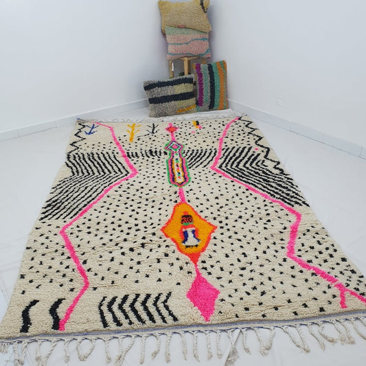Marockansk vit Azilal matta | NILAGH | 9'7x6'3 Ft | 2,95x1,92 m | 100% ull handgjorda