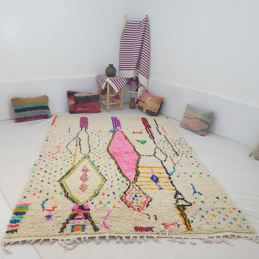 MAROCKAN BOUJAAD-MATTA | Marockansk berbermatta | Färgglad matta Marockansk matta | Autentiska handgjorda berbermattor | 7'9x5'2 Ft | 2,41x1,60 m