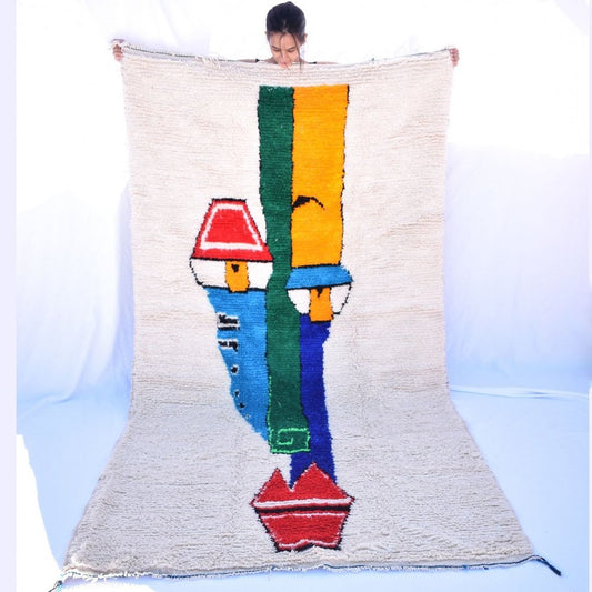 ILWIN | 8'6x5'5 Ft | 2,60x1,70 m | Marockansk färgglad matta | 100% ull handgjorda