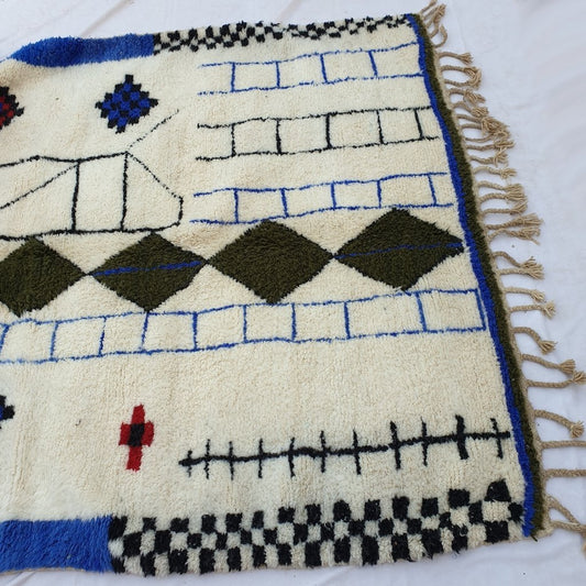 SKYMA | 7'7x4'8 Ft | 2,34x1,45 m | Marockanska Beni Ourain matta | 100% ull handgjorda