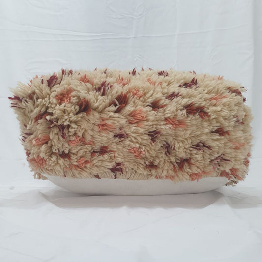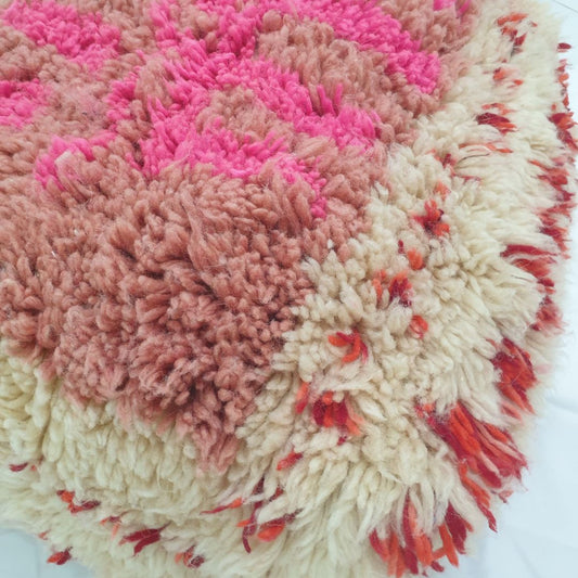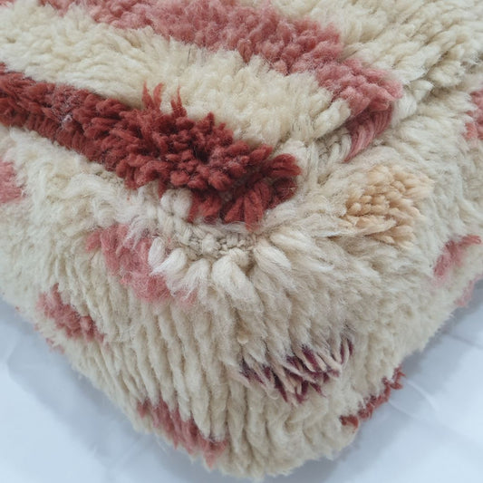 Shaggy marockansk ullgolvdyna - Pink & Beige Plush Pouf 24x24x8 tum | 60x60x20 cm