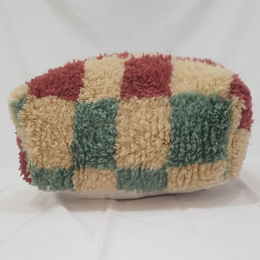 Mid-århundradet handgjorda marockanska pouf-Bold rutig golvdyna 24x24x8 tum | 60x60x20 cm