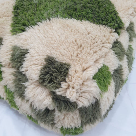 Plush Handwoven Moroccan Pouf - Green Diamond Checkered Floor Cushion 24x24x8 Inch | 60x60x20 cm