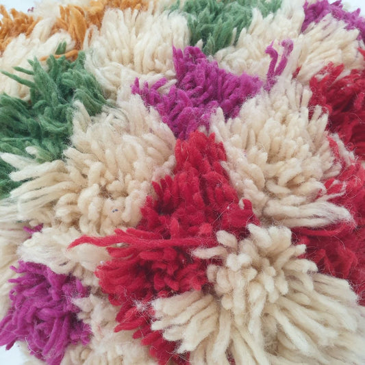 Vibrant Handwoven Beni Ourain Pouf - Colorful Patchwork Floor Cushion 24x24x8 Inch | 60x60x20 cm