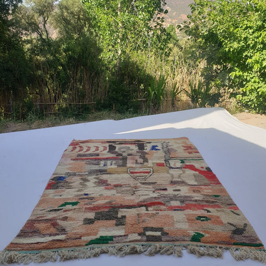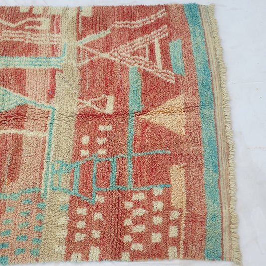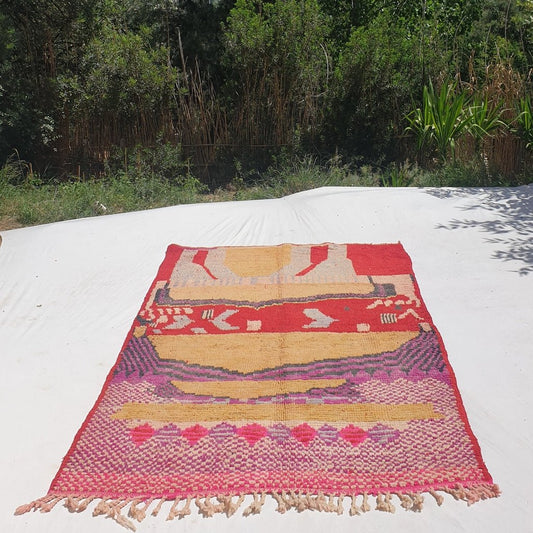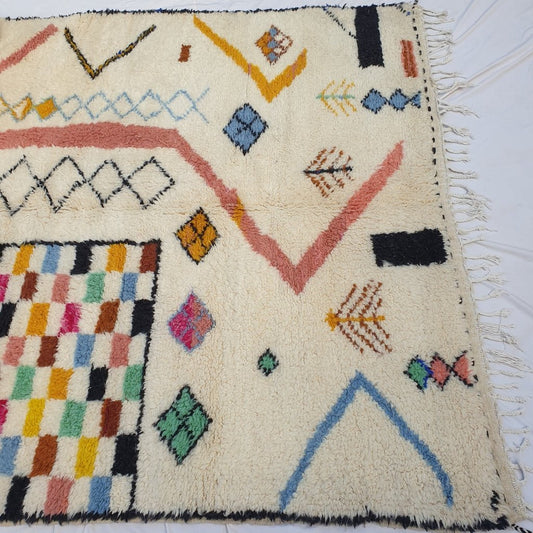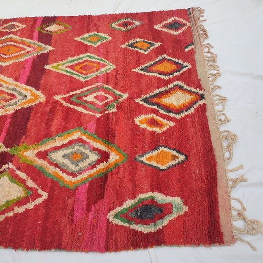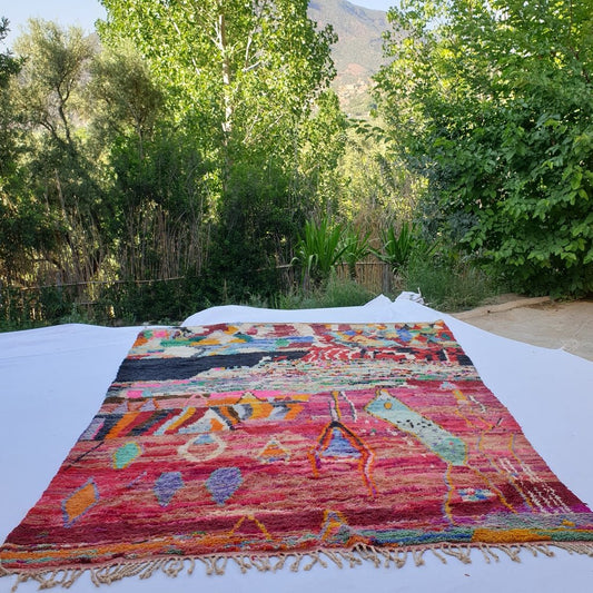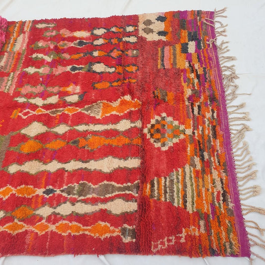 Taliha - Marockansk Boujad Berbermatta | Färgglad äkta handgjord sovrumsmatta | 8'5x5'7 Ft | 2,58x1,74 m
