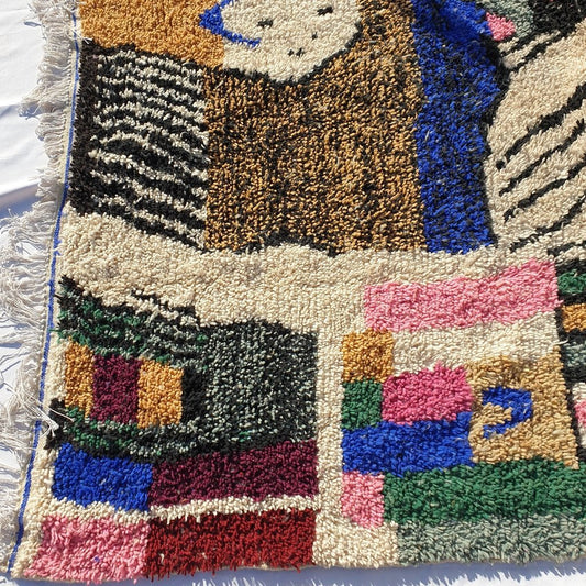 TIBIJ | 7'7x4'9 Ft | 2,34x1,50 m | Marockansk färgglad matta | 100% ull handgjorda