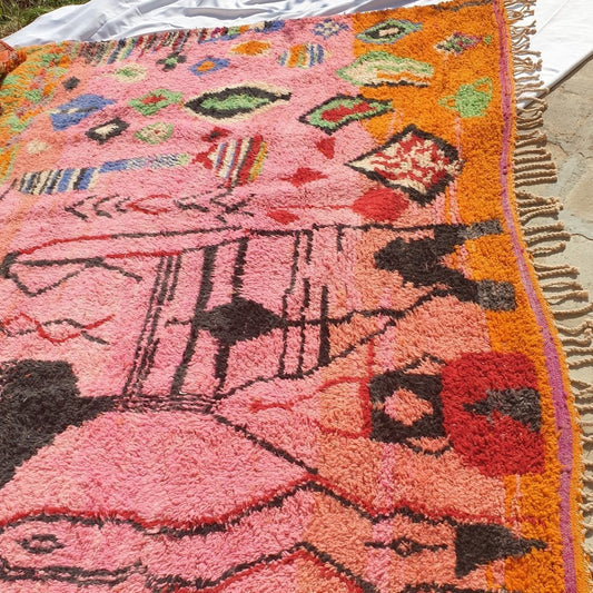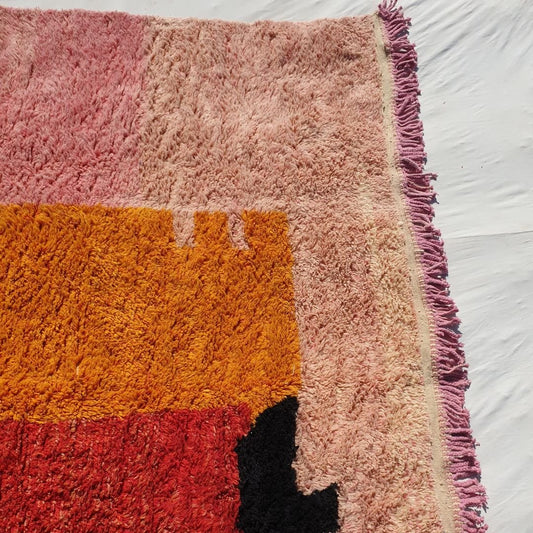 Anpassad Idouh - Marockansk matta Rosa Orange Beni Ourain | 8'5x11 fot | Marockansk färgglad shagmatta | 100% ull handgjorda