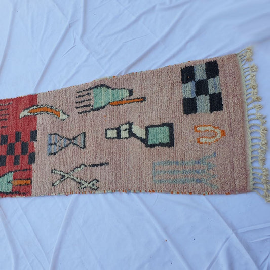 Anpassad KSAR Runner | 9'5x2'5 Ft | 2,91x0,77 m | Marockansk färgglad matta | 100% ull handgjorda