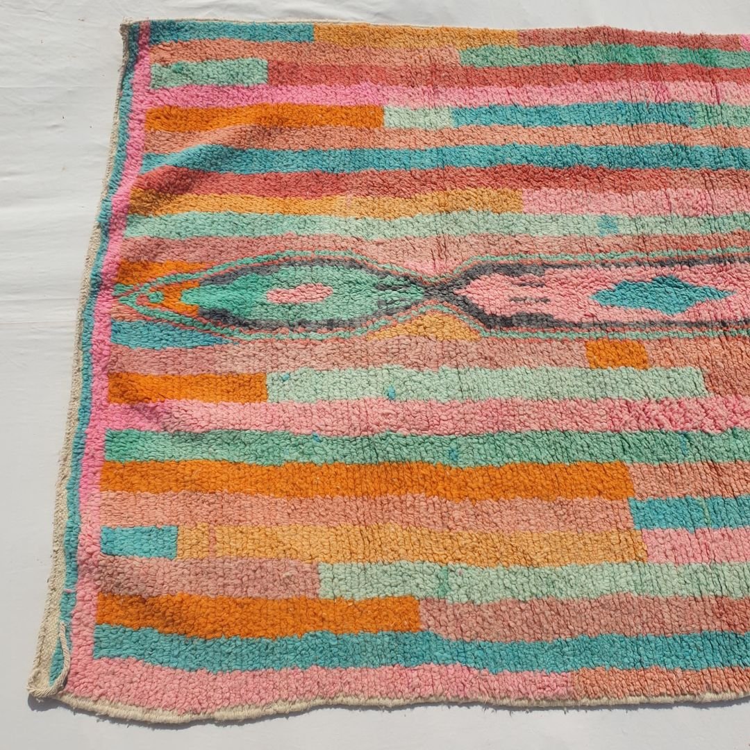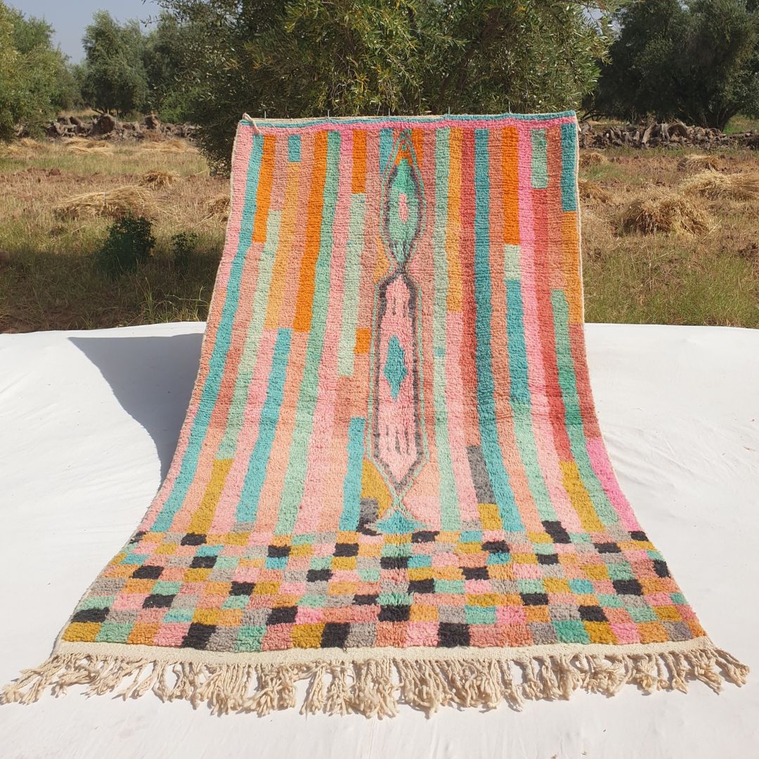 Boujad, the Amazing Berber lightweight’s rug. The design is Inspired by the Kilim rugs. Named also Hanbal, because of its Boho, Modern, Scandinavian, and traditional Berber Moroccan style, it has only one side, it is usually used for floors or to decorate the walls of the interiors.