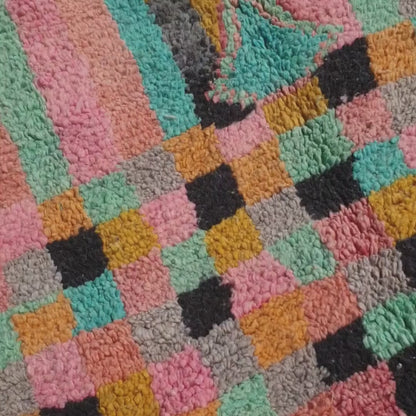 Benabia - Boujad 5x9 Rug Multicolored Checkered Wool Area Rug | 5'15x9'22 Ft | 157x281 cm