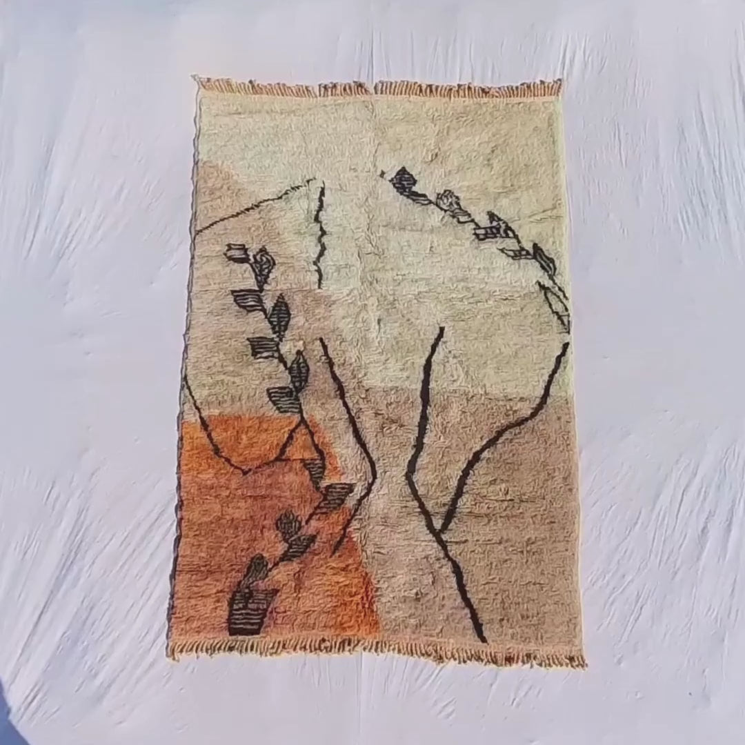 Klassikern Beni Ourain, den bästa mattan för alla interiörer och alla mönster. Ait Ouaraïn är liten men berömd stam i östra delen av Taza stad i Mellersta atlas, de använder bara mjuk och tjock naturlig ull för att göra det bästa handgjord gnista för ditt utrymme. Färgerna och stilarna är inspirerade från de snöiga och Klippiga bergen i den mellersta atlasen.